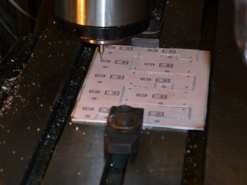 Next, Brian used a milling machine to follow the traces and remove the copper as needed.
